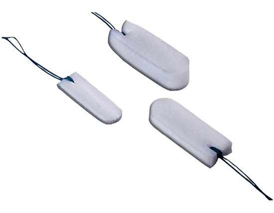 Feito de PVA (Hidroxilato de Polivinil Acetato) os tampões nasais são comprimidos duas vezes para facilitar sua inserção e expandem progressiva e suavemente, possibilitando um posicionamento adequado. Possuem a propriedade antiaderente junto a mucosa nasal, facilitando assim a sua retirada. Disponível com uma via aérea integrante para facilitar o fluxo de ar nasal durante o uso.